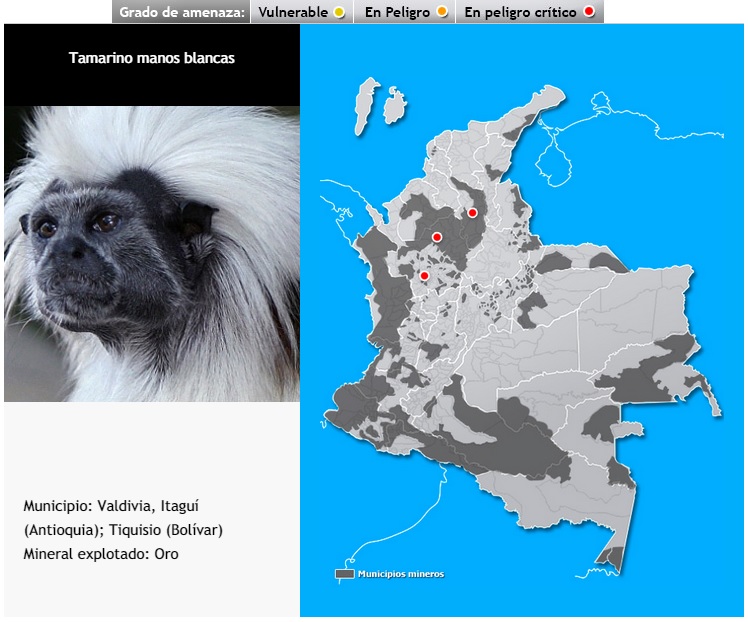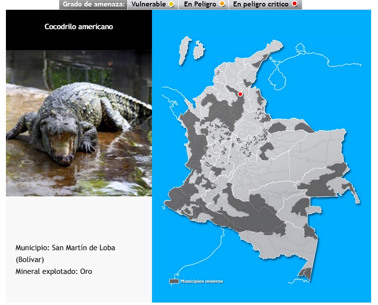 Esta investigación arrojó que el ministerio del medio ambiente poco ha investigado sobre el efecto que la minería está teniendo en la fauna colombiana, Pero a través del Sistema de Información de Alertas Tempranas de Conservación Internacional, La Silla encontró que 98 de las 269 especies amenazadas en Colombia se encuentran en municipios mineros. En especial en municipios del Chocó, Boyacá y Antioquia.